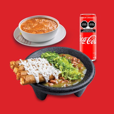 Con crema, queso, salsa verde y roja. Acompañados de guacamole y frijoles refritos. 4 piezas.