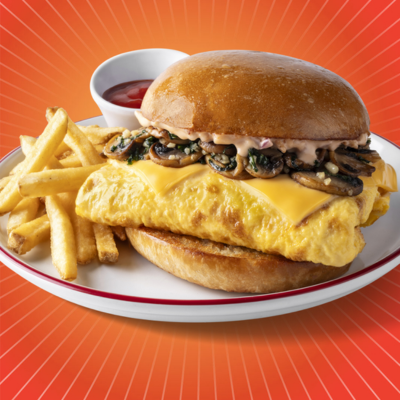 Huevo (2 pzas) con champiñones y queso americano, acompañado con ensalada