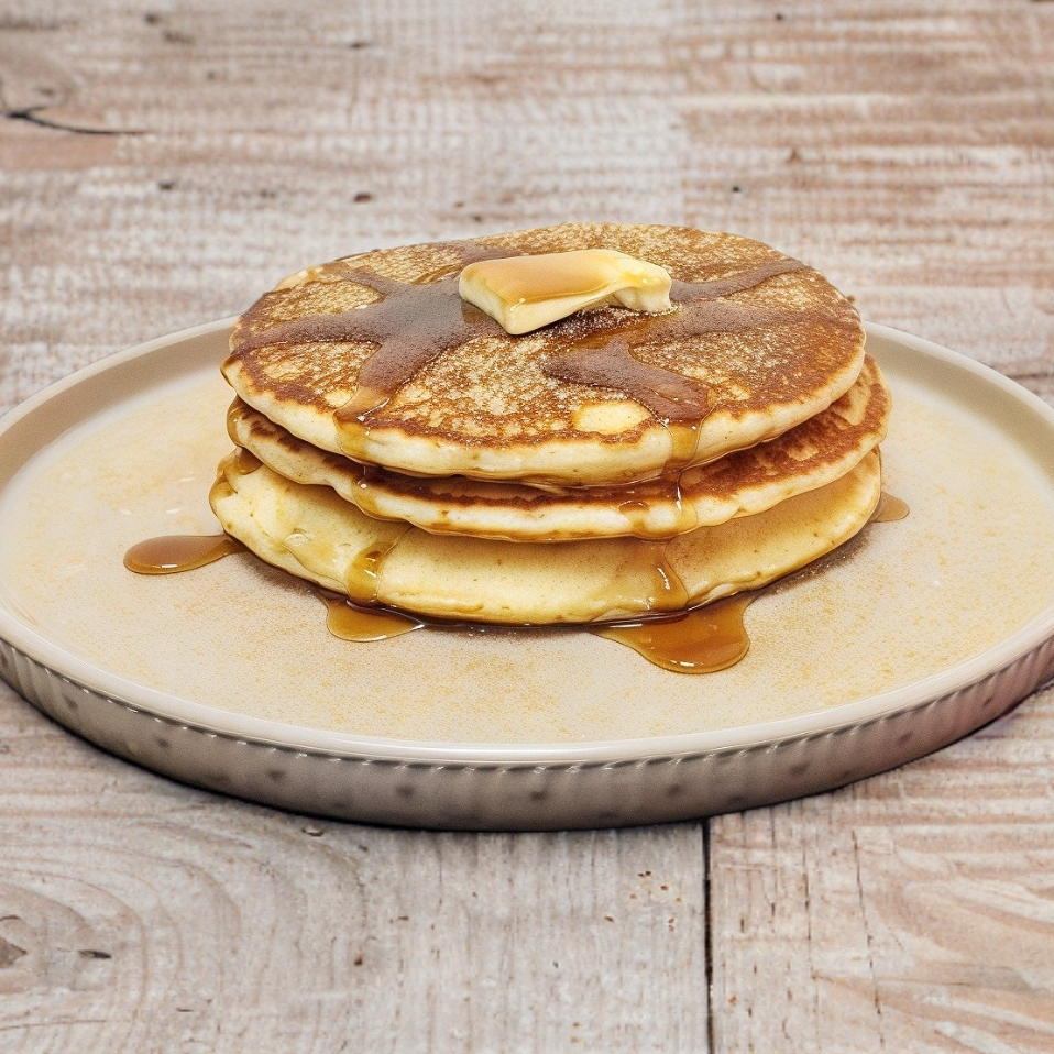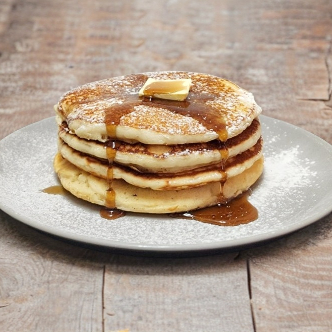 Orden de 4 piezas de Pancakes sencillos grandes, incluyen: Mantequilla, Miel de maple y decoracion a elegir. Agrega el extra que mas te agrade.