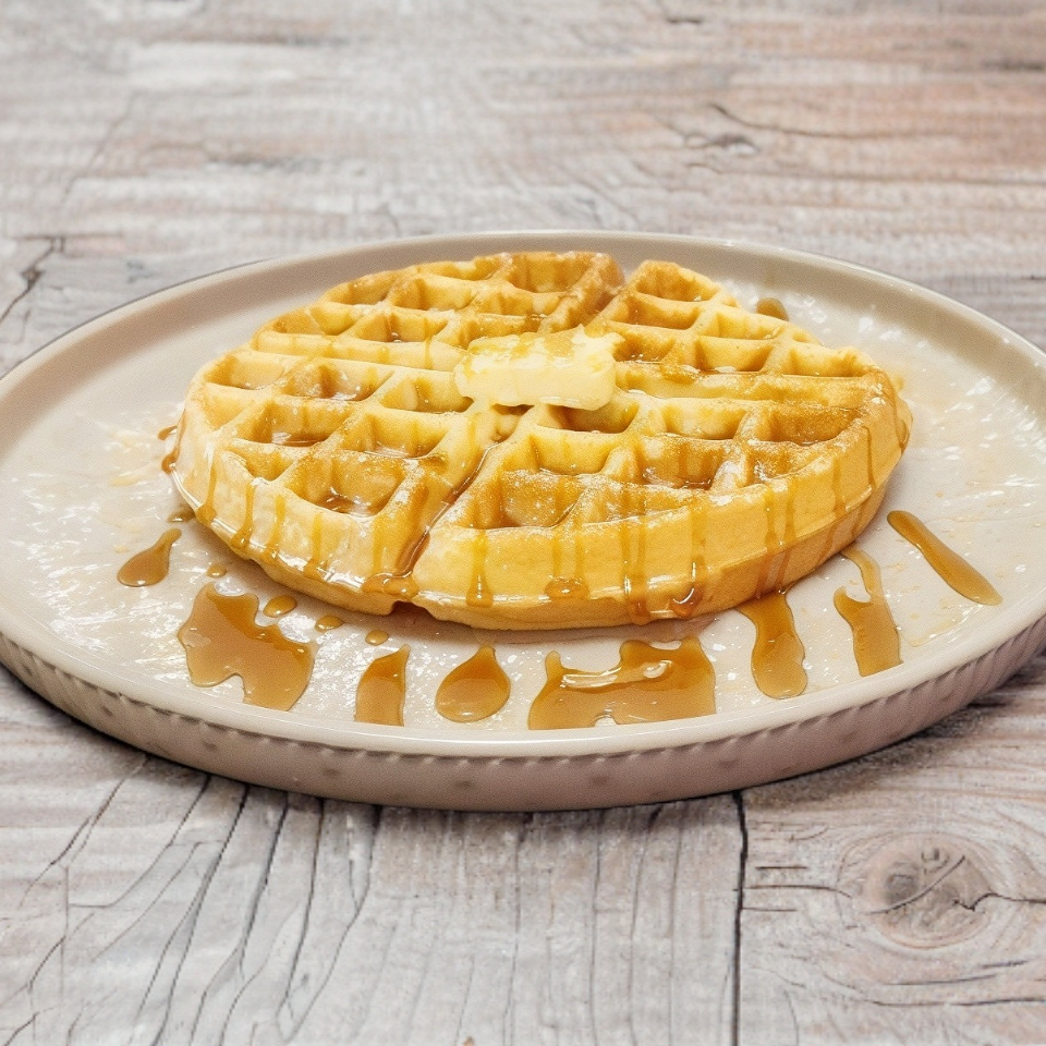 Waffle Americano sencillos, incluyen: Mantequilla, Miel de maple y decoracion a elegir. Agrega el extra que mas te agrade.