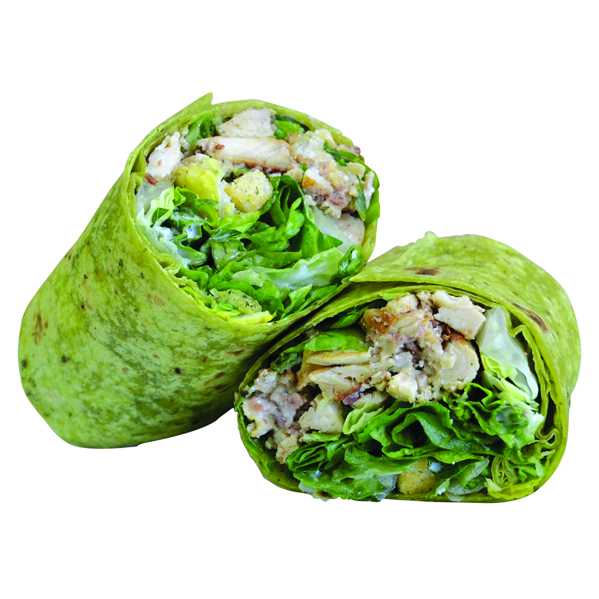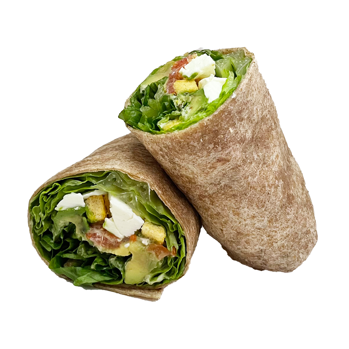 Pollo pesto, mozzarella, crutones, tomate, lechuga y aderezo césar.