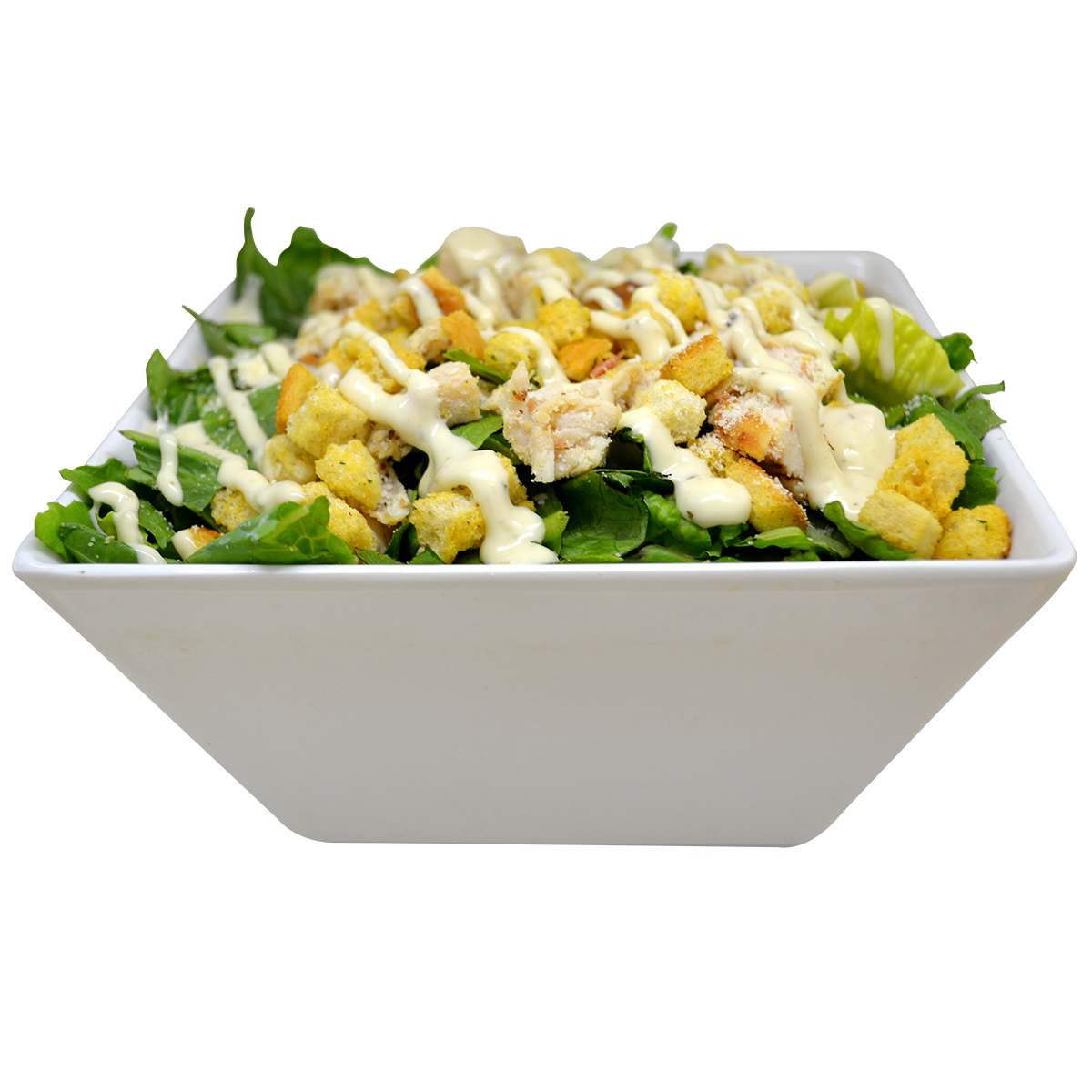 Pollo, tocino, crutones, queso parmesano, lechuga y aderezo cesar. Incluye 2 oz de vinagreta serrano limón.