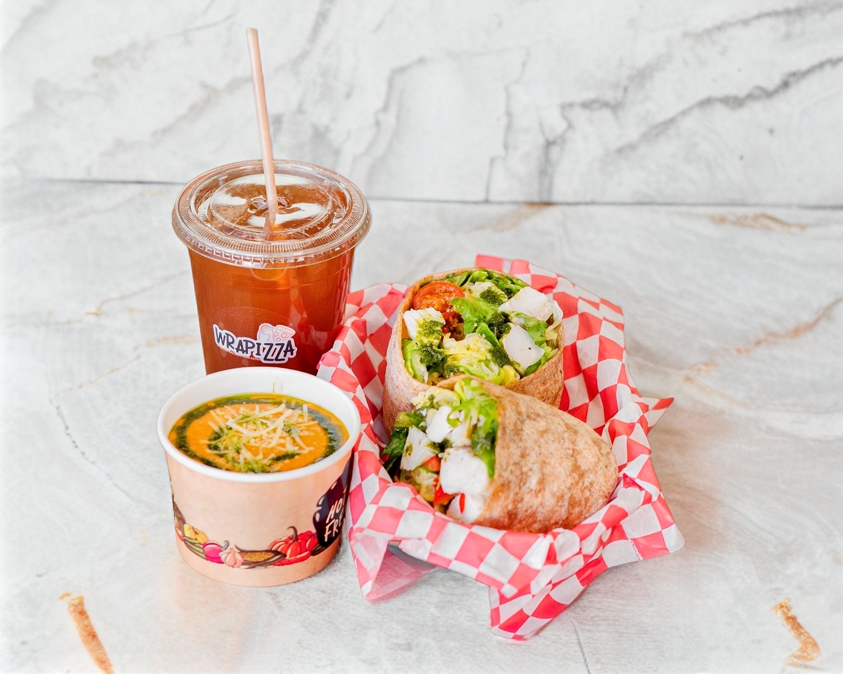 Cualquier wrap a elegir + crema de tomates rostizados + té de la casa