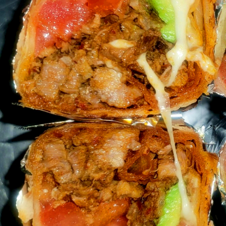 carne adobada, queso asadero, tomate, aguacate