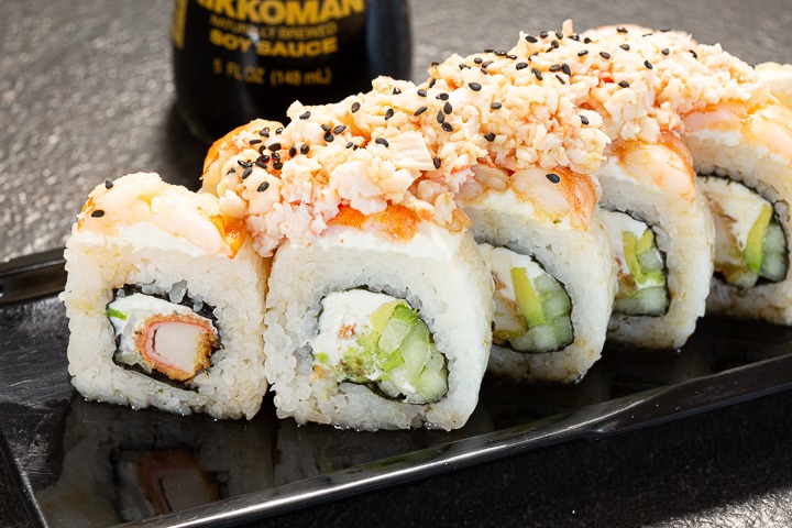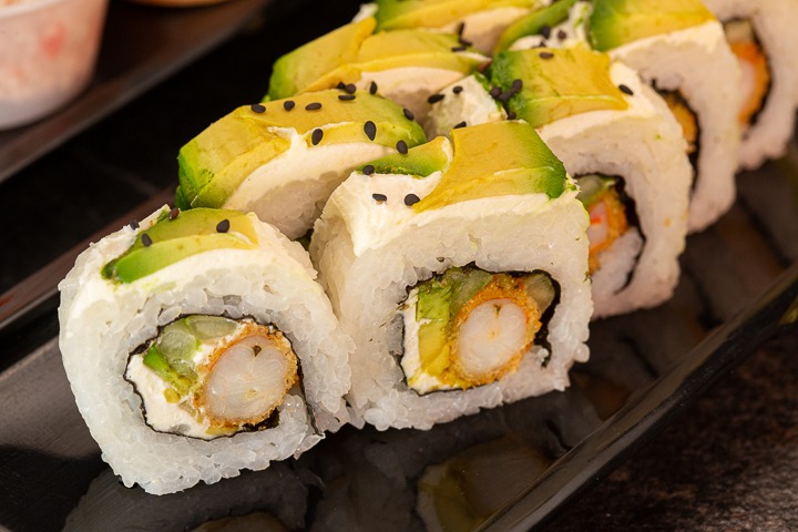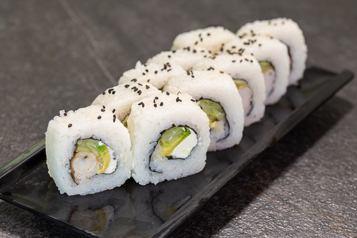 El clásico con surimi, camarón o carne se res. Lleva pepino, aguacate y queso crema