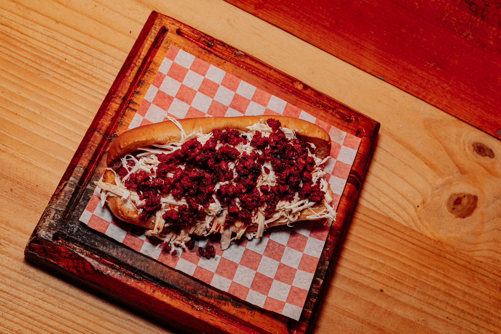 Perro caliente en vez de salchicha chorizo de cerdo.