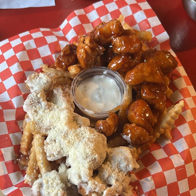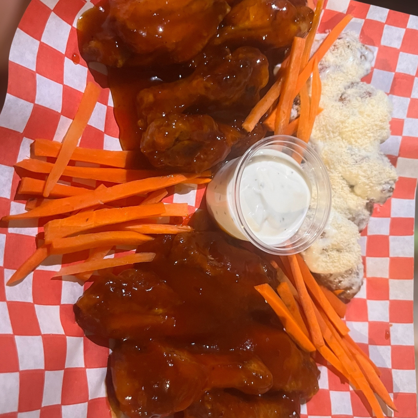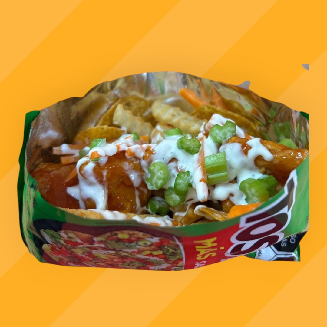 Tostitos de tu preferencia acompañados de boneless con la salsa a elegir, apio, zanahoria, ranch y parmesano
