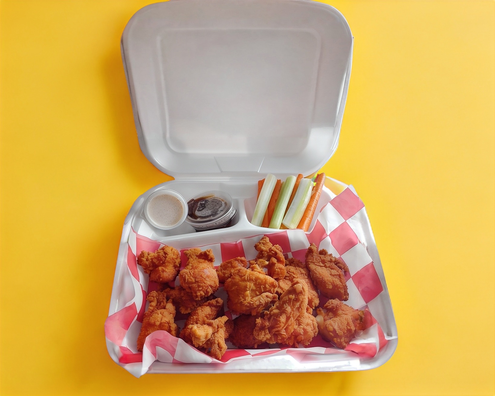 250 grs de boneless, zanahoria, apio, ranch y salsa hot