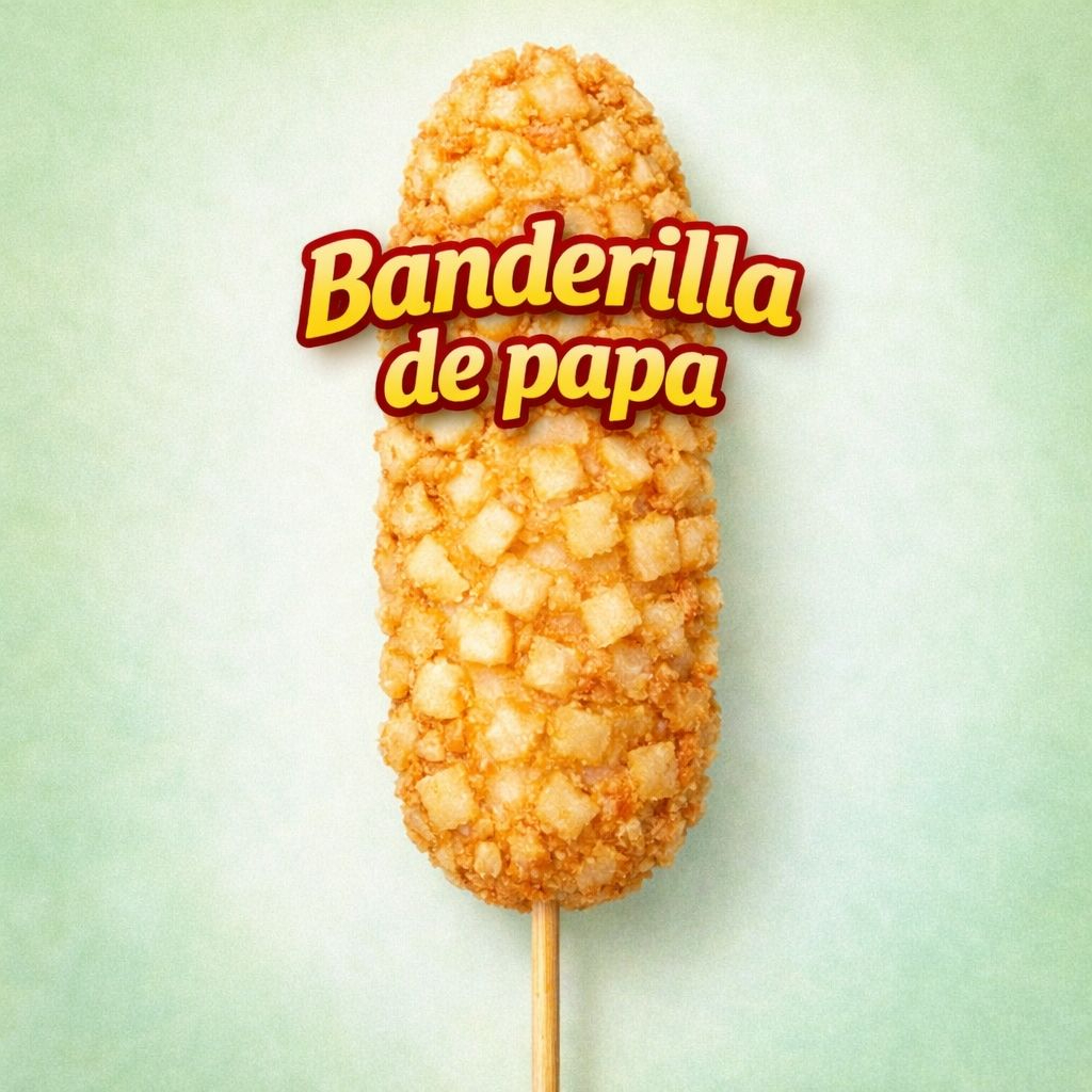Banderilla de Salchicha, Empanizado en panko, con cubitos de papa frita