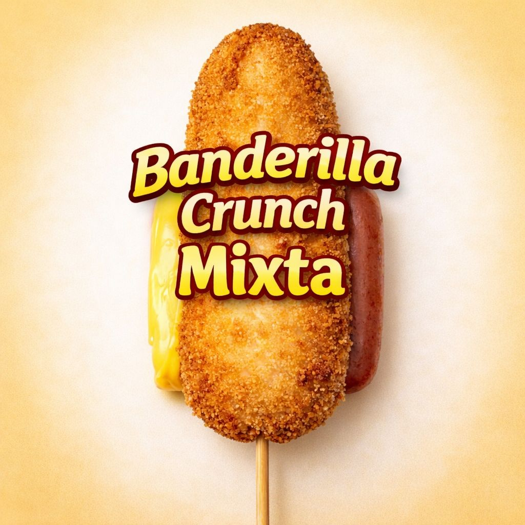 Banderilla de salchicha y queso, Empanizado con panko, con pequeños trozos de papa frita