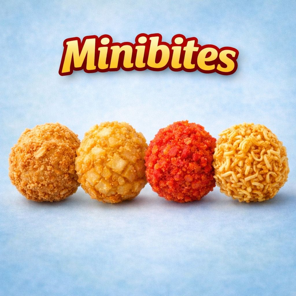 4 bolitas mixtas, Queso y Salchicha, con los 4 elementos (Flamin hot, Papa, Ramen y Original)