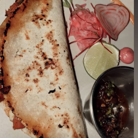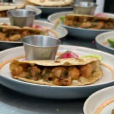 Orden de 2Tacos Gobernador tortilla de maiz a las brasas, queso , machaca de camaron con chile poblano y cebolla