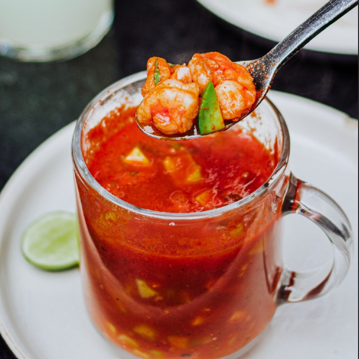 Orden Tos Camaron Tra Crudo, aguacate, pepino, cebolla morada, tomate, cilantro , jugo de almeja y serrano
