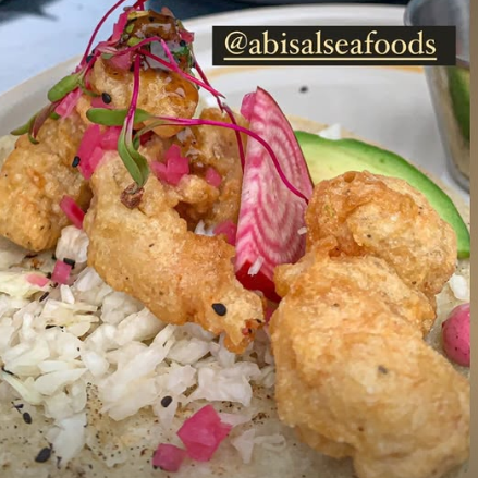 Orden 2 Tacos Cap Camaron, aguacate , repollo, pico de gallo, aderezo de chipotle y cebolla morada