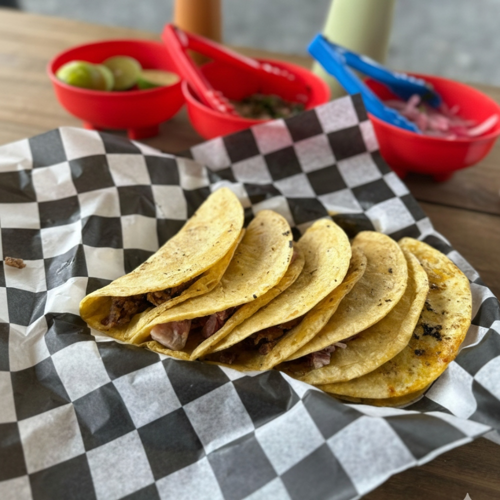 Orden de tacos de chicharrón morita (5 tacos de chicharrón en salsa morita).