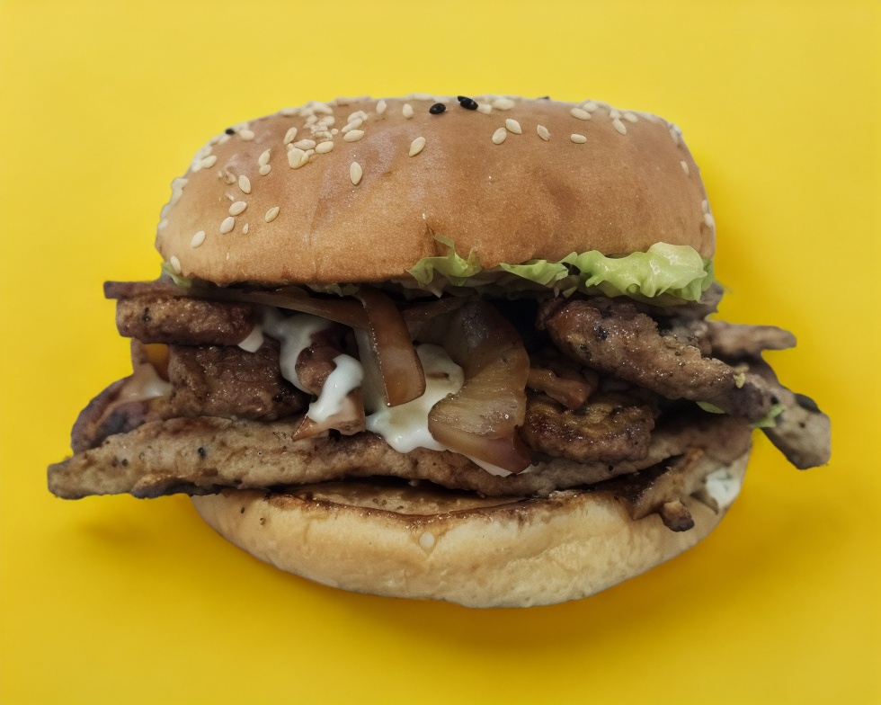 pan artesanal,aderezo de la casa,carne casera 100% res , queso blanco,queso amarillo,jamon,salami,lechuga, tomate,cebolla,pepinillos,catsuo y polaca