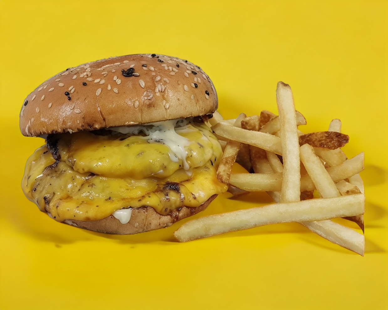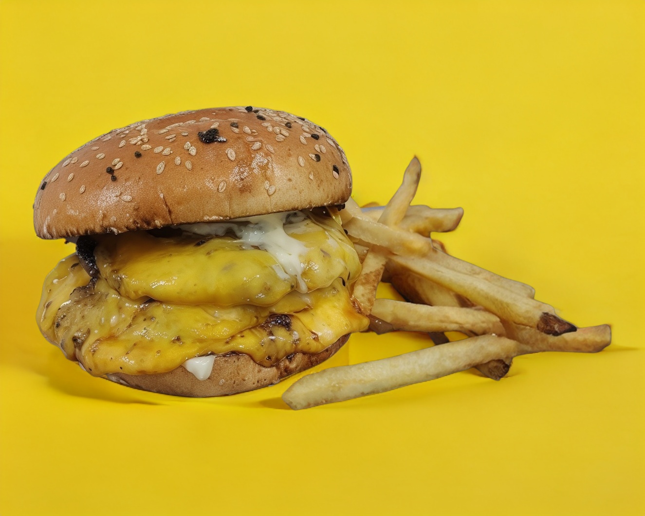 pan artesanal ,doble carne casera 100% res , doble queso amarillo