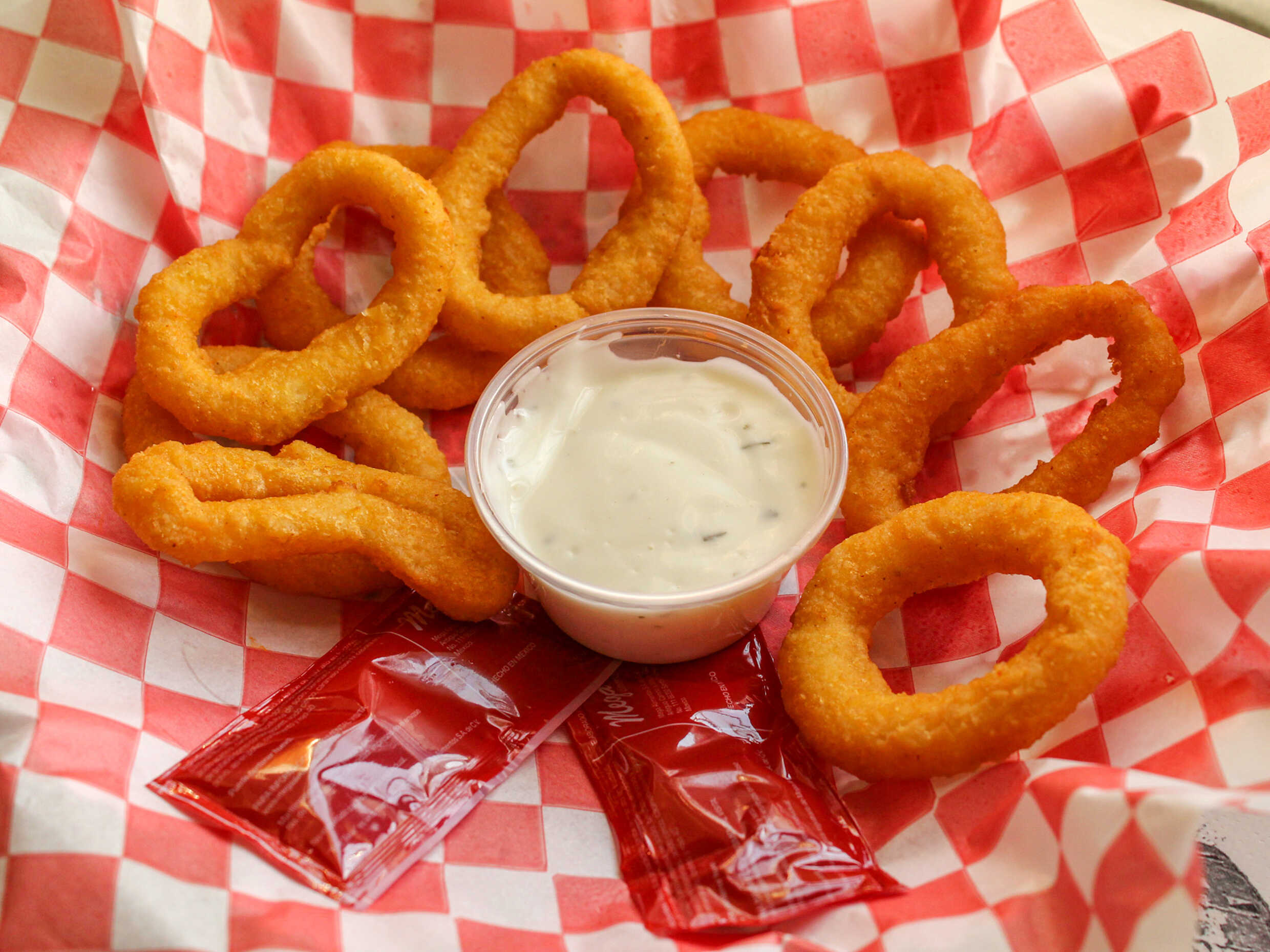 250 gr. de boneless, 3 dedos de queso, 2 aros de cebolla, porcion de papas fritas.