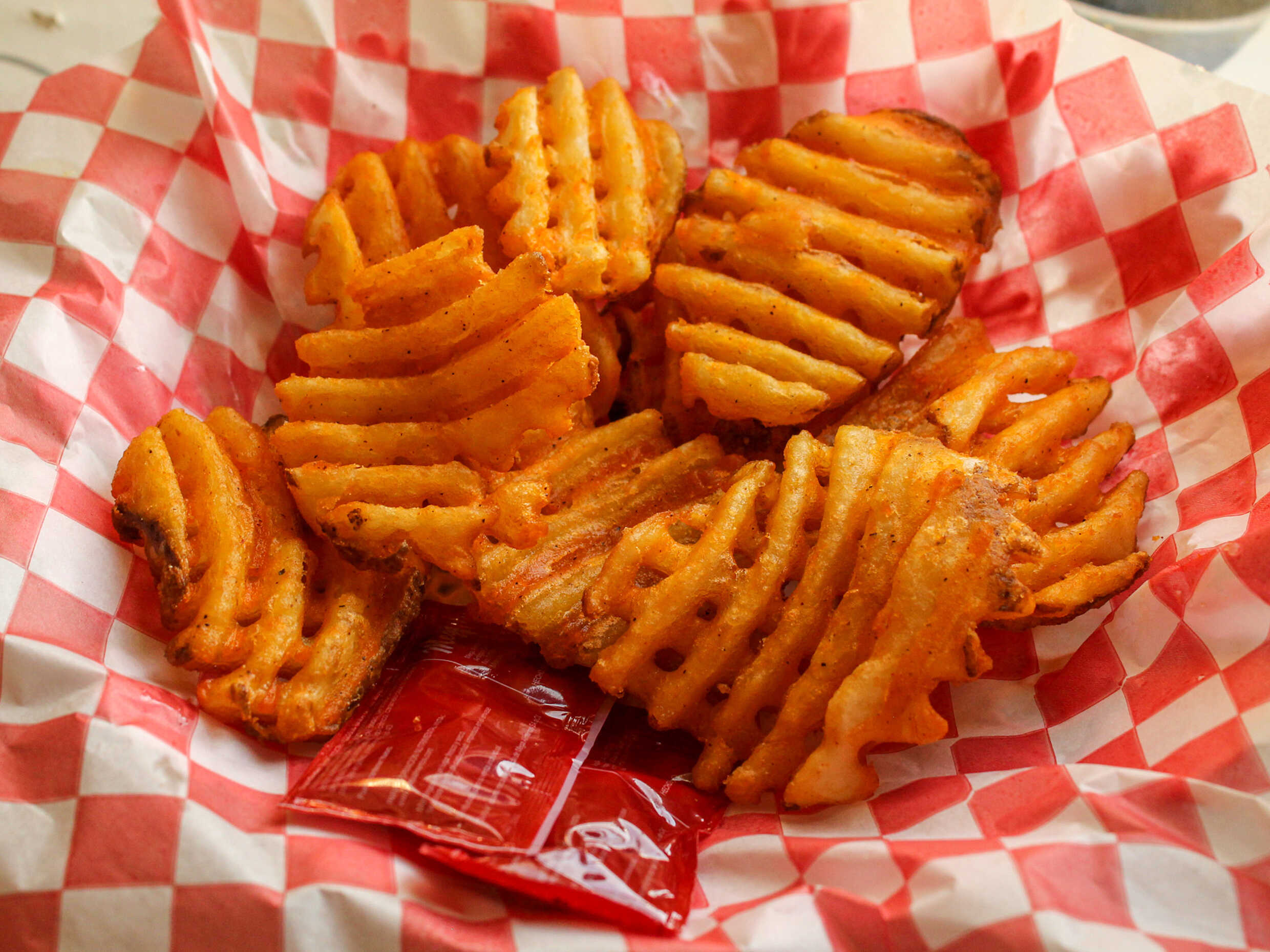 Con papas fritas acompañado de aderezo ranch y bañadas en su salsa favorita.