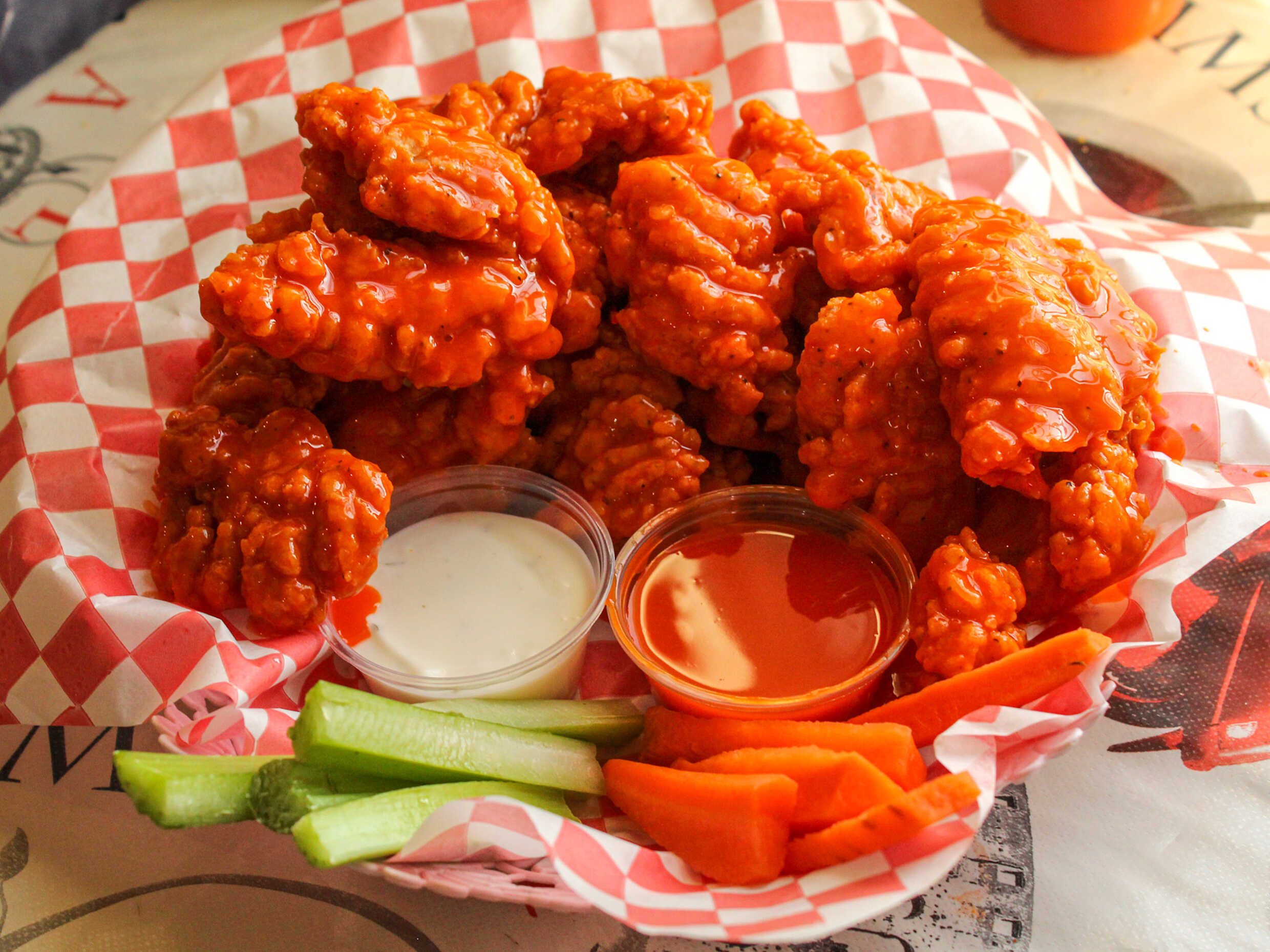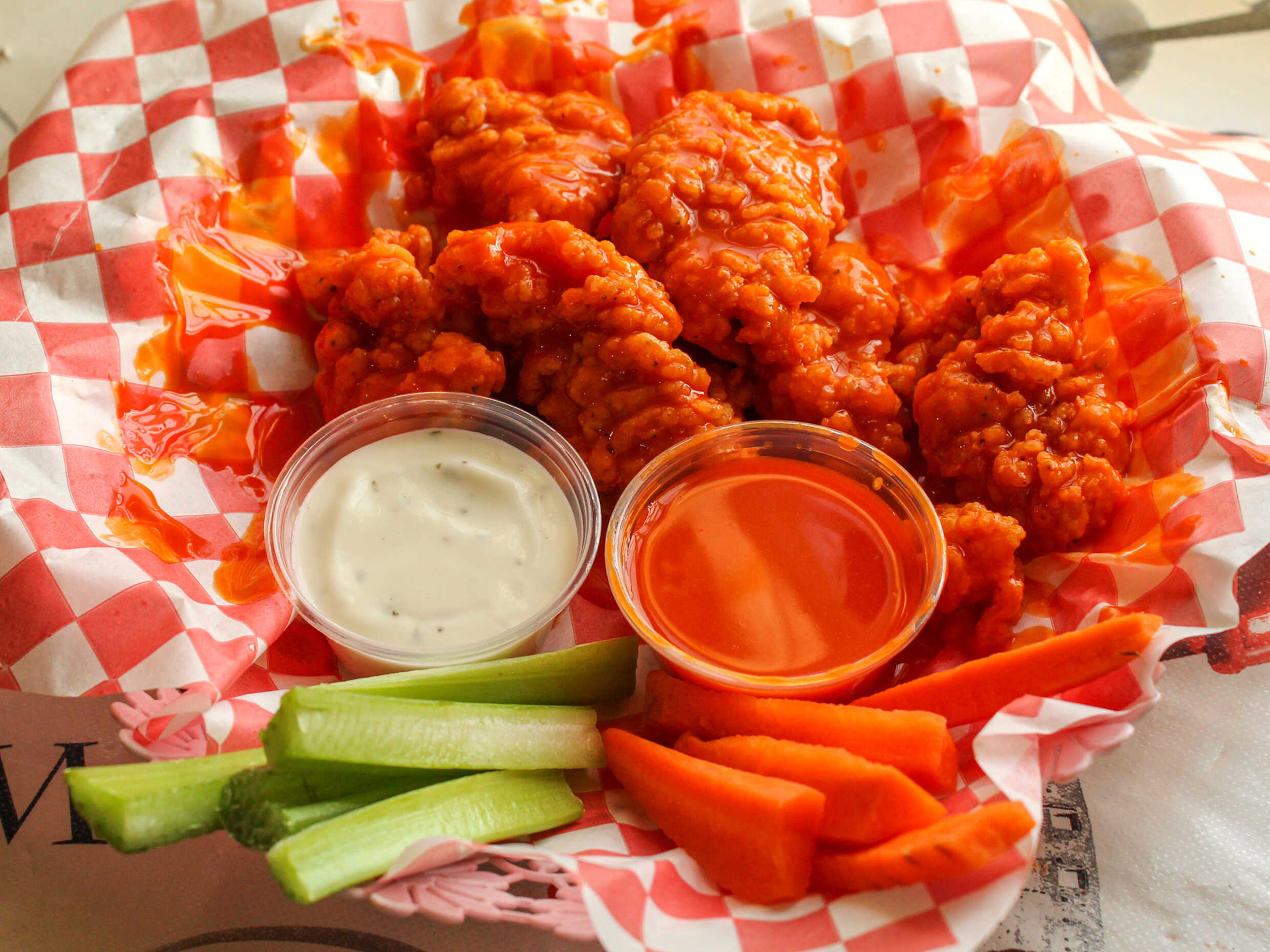 Con aderezo ranch, zanahoria y apio bañados en tu salsa favorita.