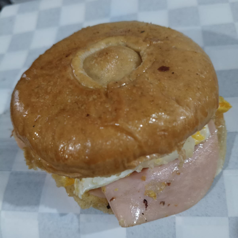 Omelette con queso oaxaca, con jamón, dentro de pan ligeramente tostado con mantequilla