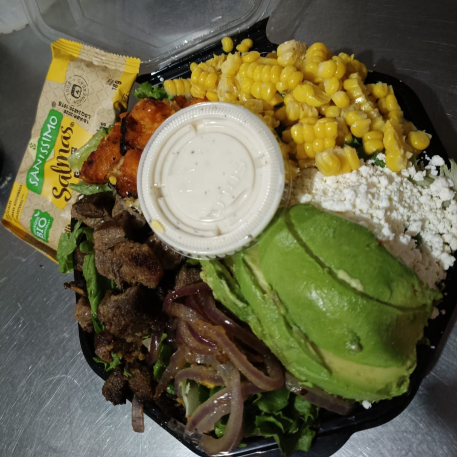 Atún con tomate, mayonesa, aguacate, cebolla morada, cilantro y lechuga