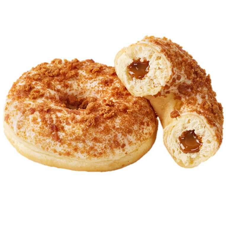 Dona bañada con la icónica crema Lotus® y rellena con su galleta caramelizada, equilibrio entre dulzura, canela y textura crujiente.