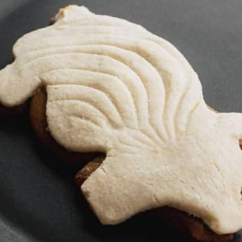 Puerquito tradicional de piloncillo, cubierto con la pasta de una concha de vainilla.