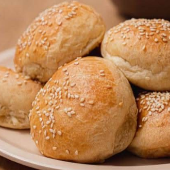 Panecito de mantequilla relleno de queso Philadelphia con topping de ajonjolí blanco.