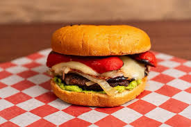 Hamburguesa de carne con BBQ 100 gramos con queso, jamón, acompañado de cebolla, tomate, lechuga, papas a la francesa.