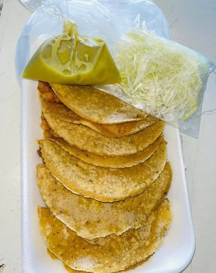 Orden de cinco tacos con tortilla de harina o maíz, rellenos de guisados tradicionales a elegir.