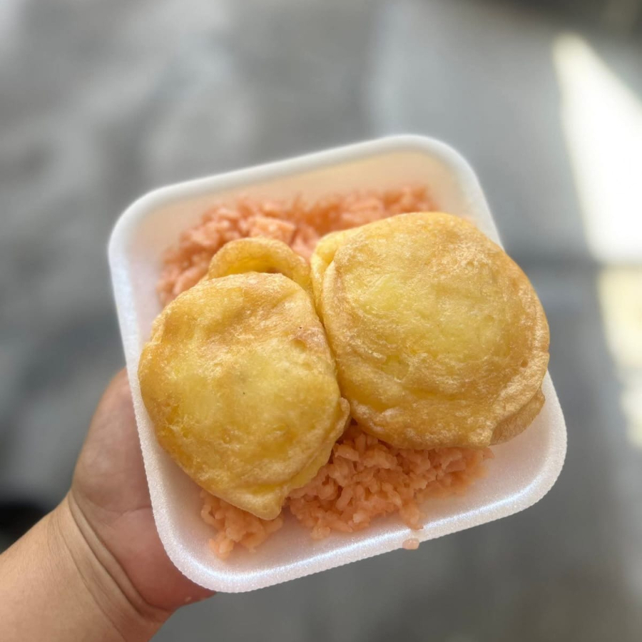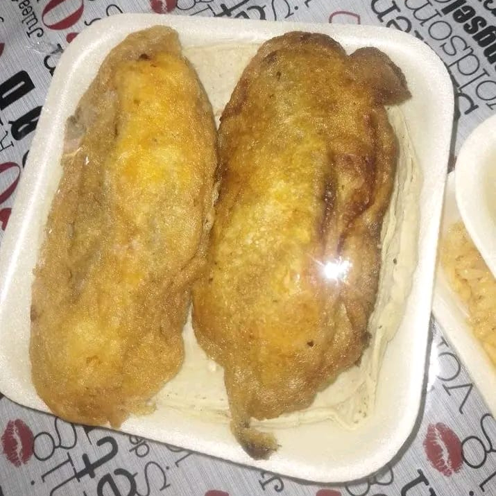 Empanadas artesanales fritas, rellenas de pollo o queso a elegir, acompañadas de lechuga, queso y salsa.
