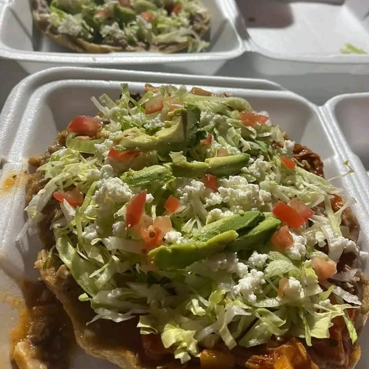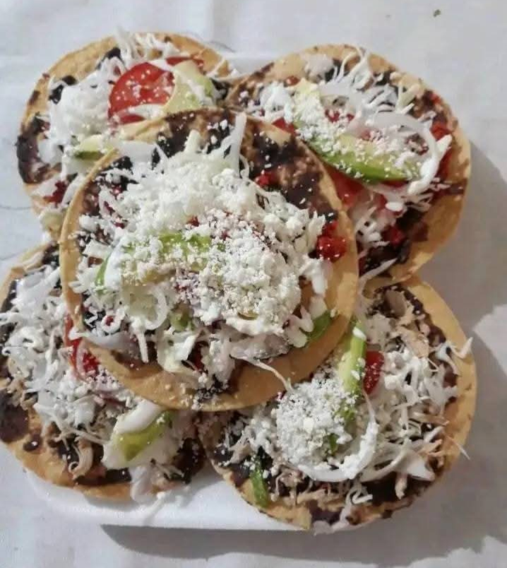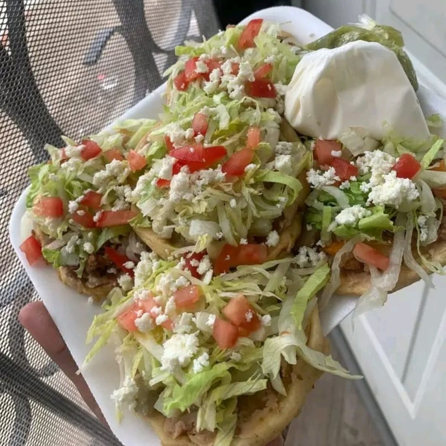 Tortilla gruesa de masa de maíz estrujada, servida con un guisado a elegir, frijoles, lechuga, queso, crema y aguacate fresco.