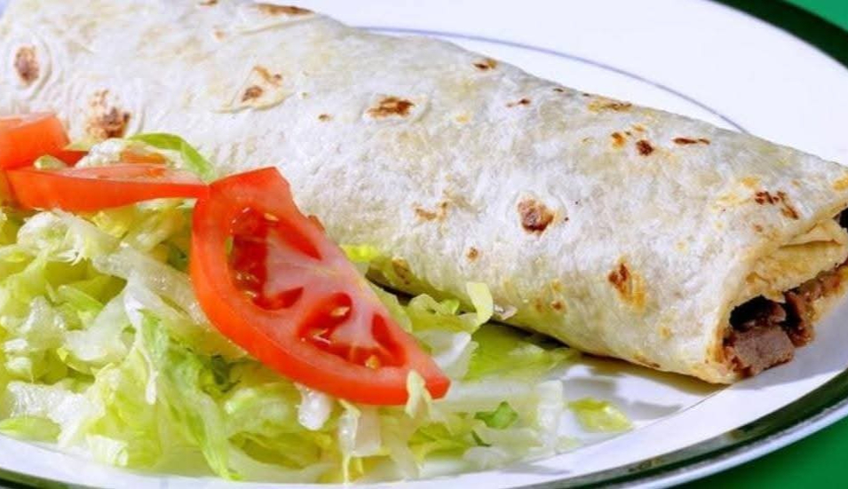 Burrito de tortilla de harina de gran tamaño relleno de su guisado favorito, acompañado de salsa y lechuga.