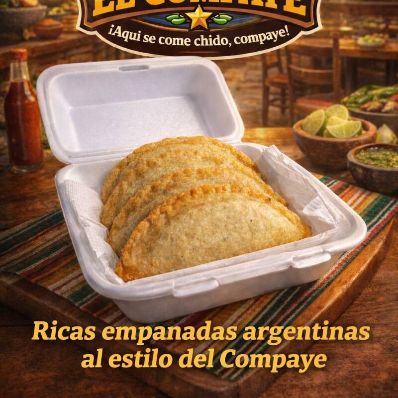 4 empanadas argentinas caseras, crujientes y con variedad de rellenos.