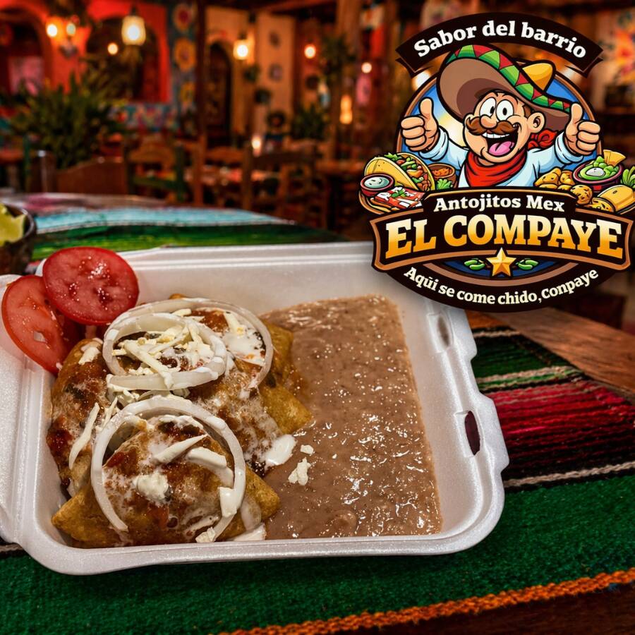 Deliciosas fritadas rellenas de queso chihuahua bañadas con exquisita salsa roja o verde acompañados con frijoles refritos de la casa del compaye