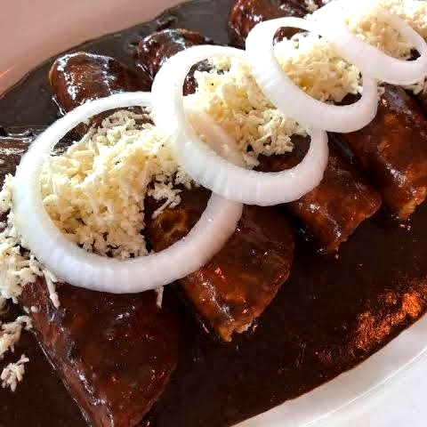 cochinita pibil acompañada con espagutti y 4 tortillas de masa