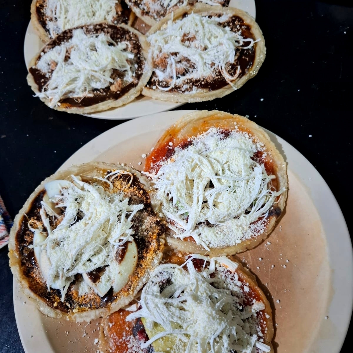 Huevo en torta con cilantro, cebolla y chile acompañado con frijoles y 4 tortillas de masa