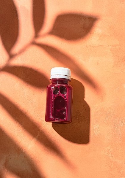 Mini botella con jugo de betabel, manzana, jengibre y matcha, una combinación energética y refrescante llena de beneficios naturales (50 ml.)
