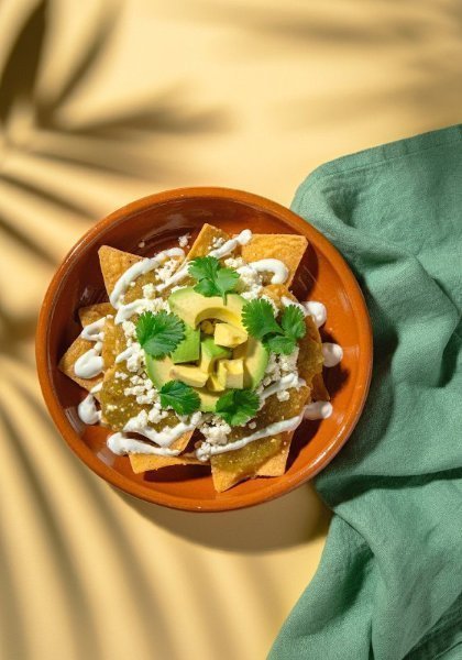 Totopos de maíz horneados con aguacate, salsa por separado y tus toppings favoritos a elección.