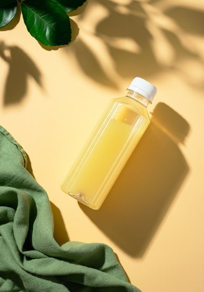 Mini botella con jugo de limón, manzana, miel, jengibre y moringa, una mezcla revitalizante y llena de propiedades saludables (50 ml.)