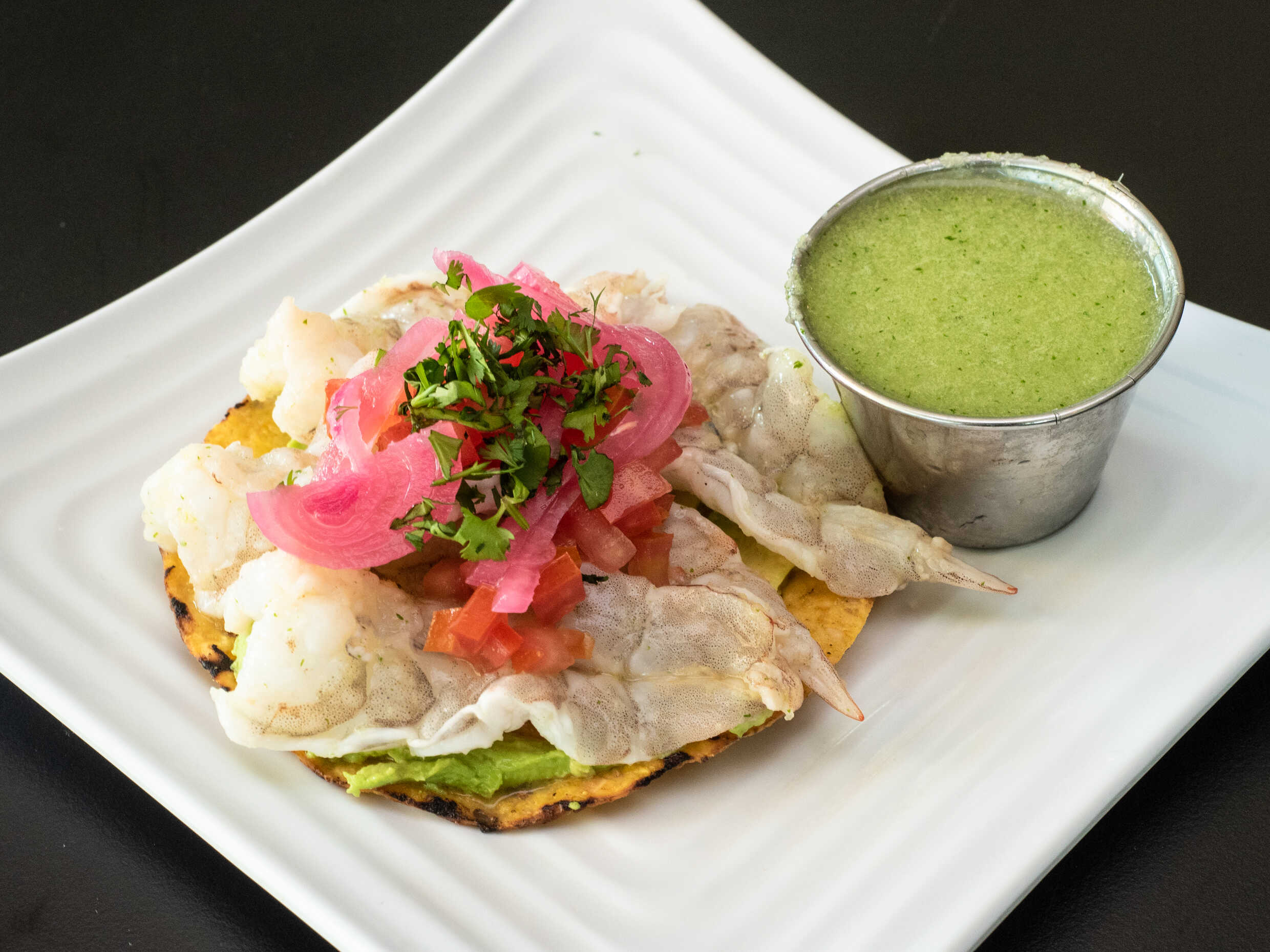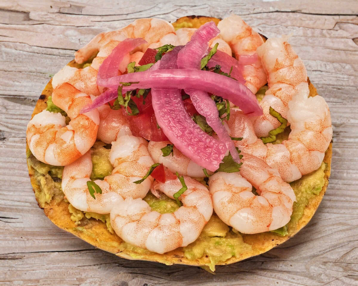 Tostada Individual de Camarón con Guacamole