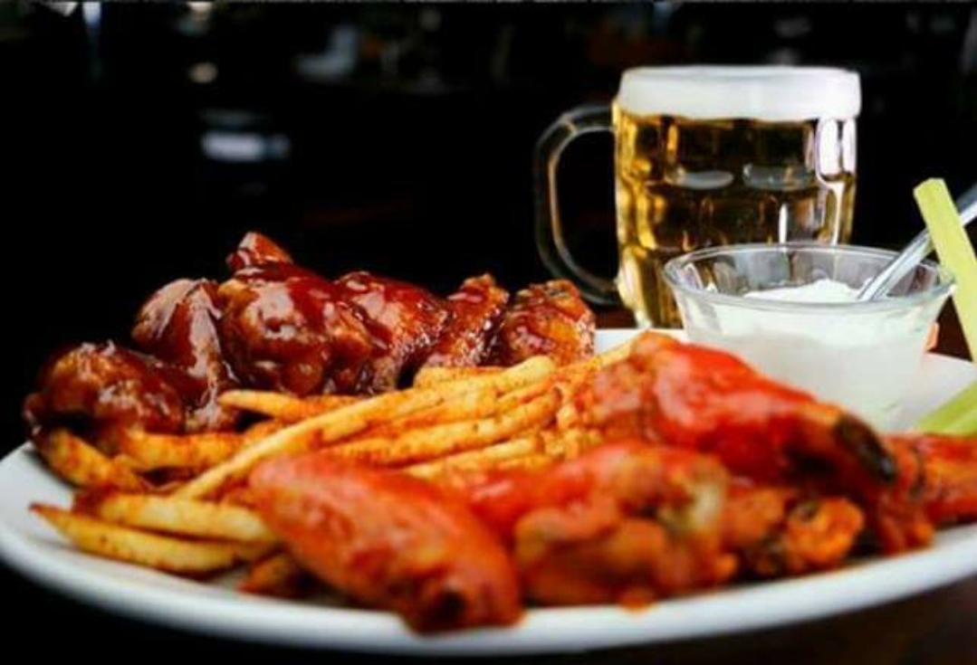 Alitas acompañadas con papas.