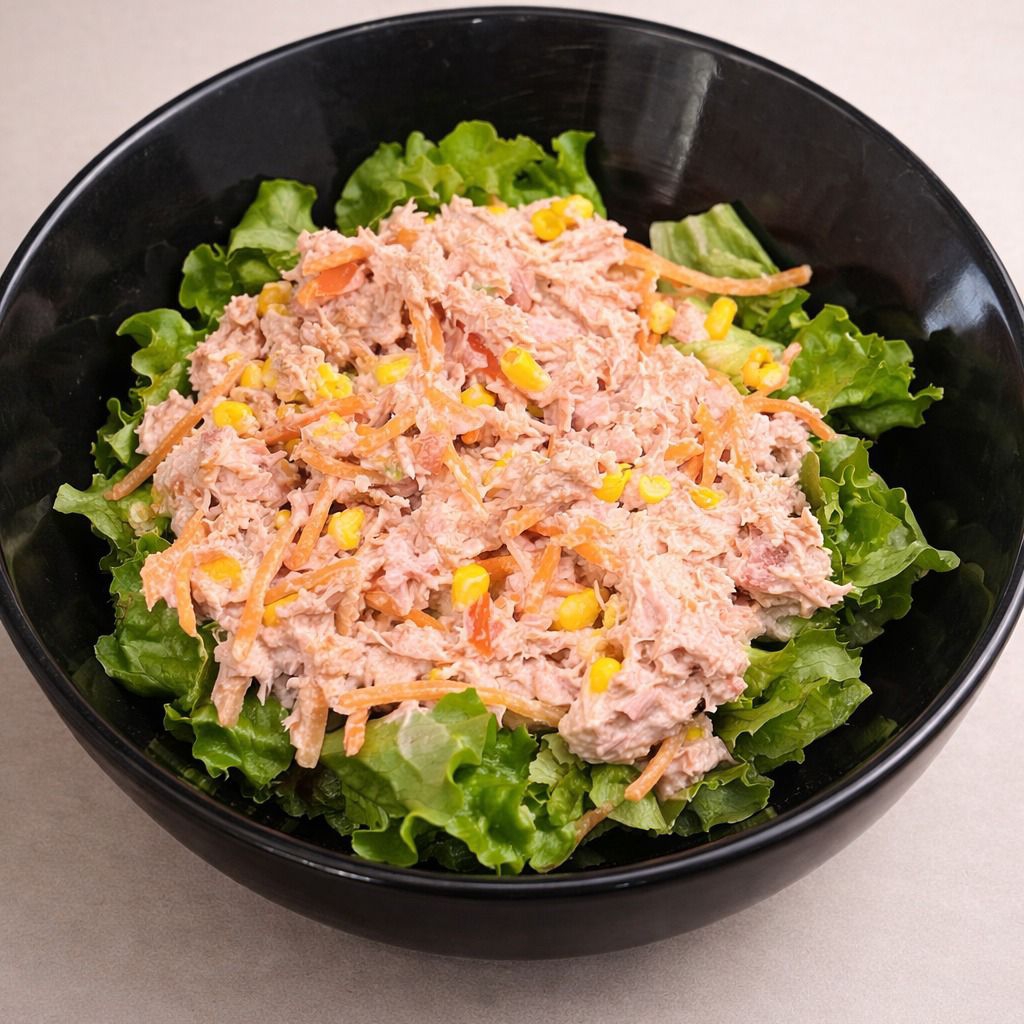 Atún, lechuga, zanahoria, tomate, elote, mayonesa, limón y galletas saladas.