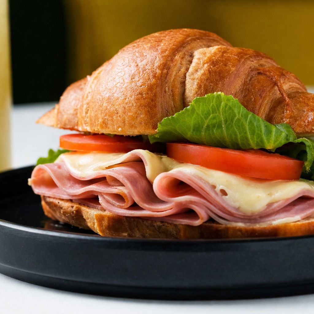 Jamón, queso amarillo, aguacate, lechuga y tomate.