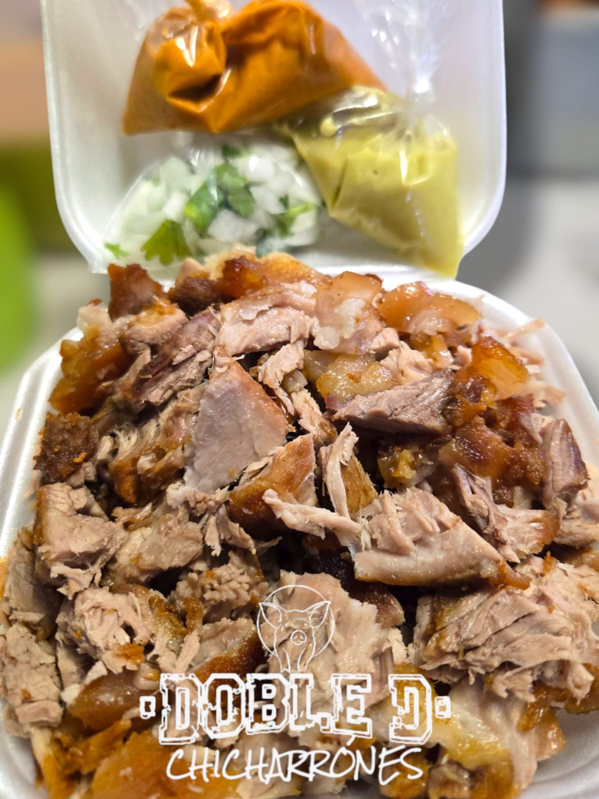 Carnitas 1 kg incluye tortillas ,salsa, cebolla y cilantro.