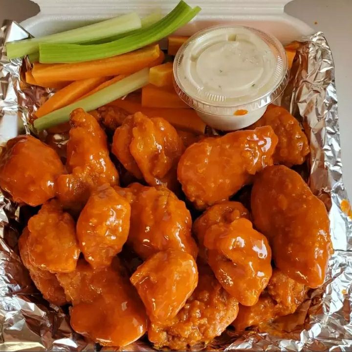 250gr trozos de boneless roceados en tu salsa favorita y acompañado de aderezo Ranch.