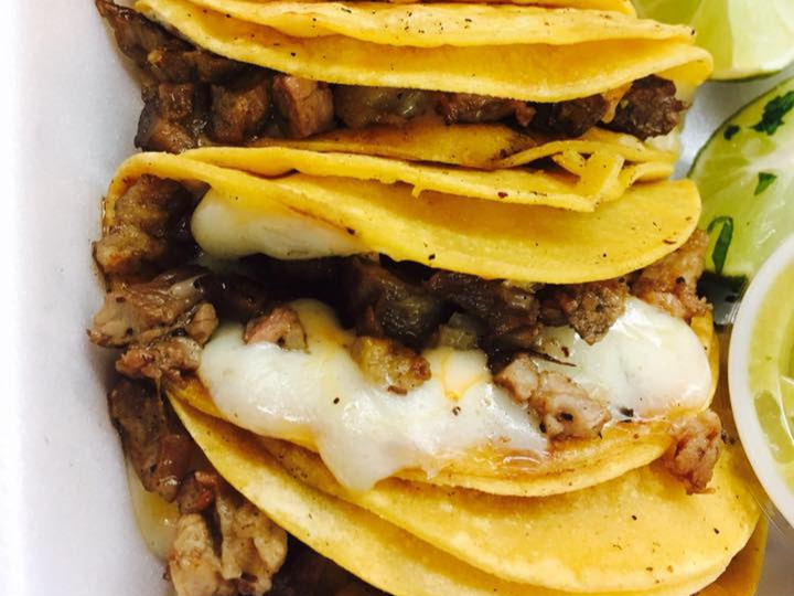 6 tacos de carne asada con delicioso queso gratinado , acompañado de cebolla asada , cebolla cilantro ,limon y nuestras deliciosas salsas.