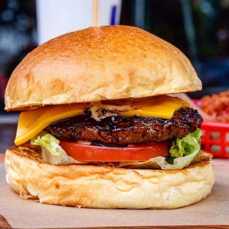 hamburguesa carne casera y al carbon , gratinada con queso y champiñones