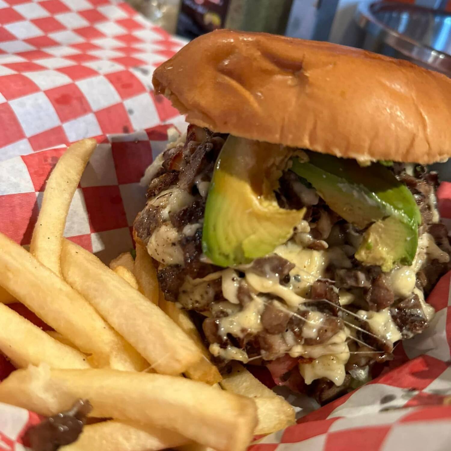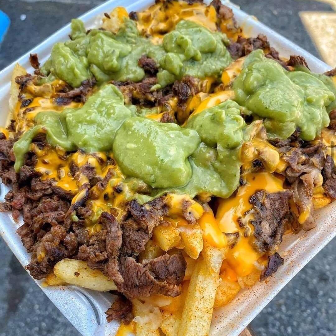 DELICIOSA CARNE ASADA CON QUESO CHEEDAR,JAMON,AROS DE CEBOLLA TOCINO Y MUCHO BBQ